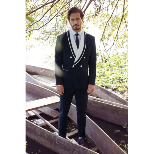 Fato trespasse azul marinho e branco 65%poliester 35%viscose